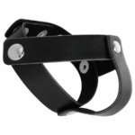 Decorado com detalhes metálicos prateados e rebites cromados. Aumente o seu prazer e resistência com este anel de couro fácil e ajustável