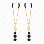 KINK – PINÇAS FINAS DOURADAS COM 3 CONTAS DE VIDRO PRETAS 7 CM