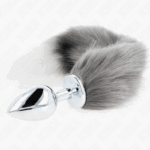 KINK – PLUG ANAL TAMANHO L 10 X 4 CM COM CAUDA SINTÉTICA 40 CM CINZENTO E BRANCO