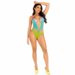 Deixe-os hipnotizados com o deslumbrante body ombre da Leg Avenue. Esta requintada peça de lingerie apresenta um design cativante multicolorido tingido, acentuado por recortes ousados e um pescoço elegante torcido garantem uma impressão duradoura. Atualize seu estilo combinando este body sensual com roupas de festival e rave, garantindo um look inesquecível.