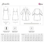 Um conjunto de lingerie excepcionalmente lindo feito de cetim preto brilhante, um roupão com uma camisa que chega até o meio da coxa. A frente e as mangas compridas do roupão amarradas na cintura com um cinto são decoradas com lindas rendas. T-shirt com alças finas ajustáveis, decorada com a mesma renda no busto. Tanga incluída