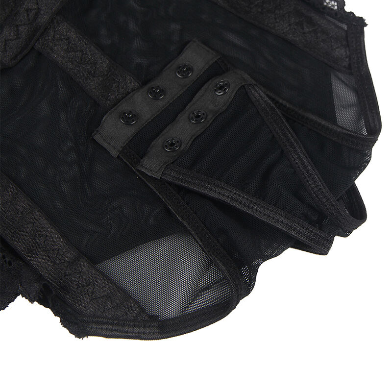 • Liga Integrada : Inclui cinta-liga integrada com argolas nas pernas, adicionando um toque de travessura e estilo. Esses detalhes não apenas embelezam sua figura, mas também oferecem um ajuste seguro e confortável.
